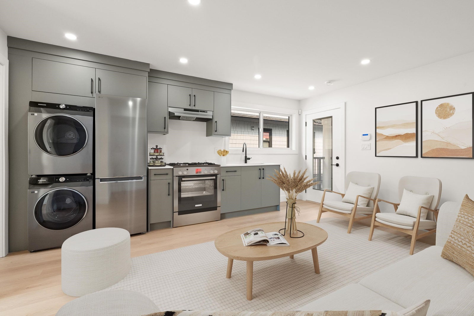 Stunning NEW HOME that will WOW any buyer! Exquisitely designed with all the comforts & attention to detail. Main home features 5 bedrooms, 6 baths, den/bdrm with ensuite; PLUS a 1 BEDROOM LEGAL SIDE SUITE and 1 BEDROOM LEGAL GUEST HOUSE! Dining and Living areas separated w/vertical wood accents, kitchen is equipped with Gold Gerber faucets, Cafe gas range, huge island with lots of drawers & storage, spice kitchen, main floor with 3 sets of French doors off kitchen area, French doors off den. Luxurious primary bedroom with spa-like ensuite, 4 add'l bedrooms. Recreation room with bar above main. High-end multi-generation home or luxury family home. In-Floor radiant heat, AC, speakers, in-ground sprinklers etc. 5068 SF, includes 452 SF Guest House. OPEN HOUSE SUN. JAN 11, 2-4 PM